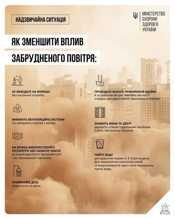 До з’ясування всіх обставин рекомендують для попередження можливого негативного впливу атмосферного повітря на здоров’я населення: