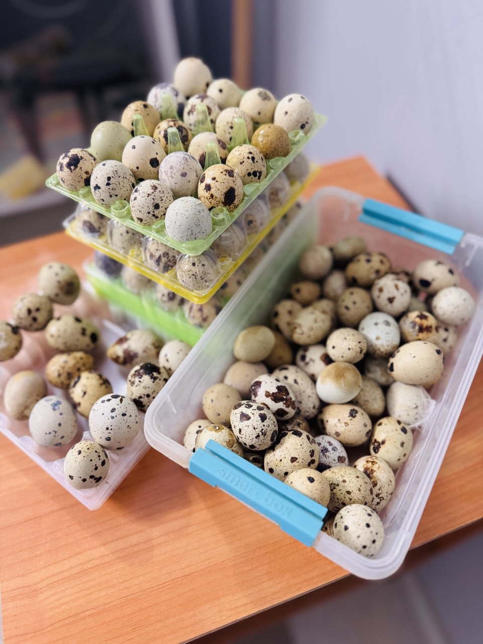 На початку Тетяна закупила 700 інкубаційних яєць в Одесі. Перед закладанням у новий інкубатор, кожне яйце ретельно переважили та просвітили, щоб переконатися у відсутності пошкоджень.