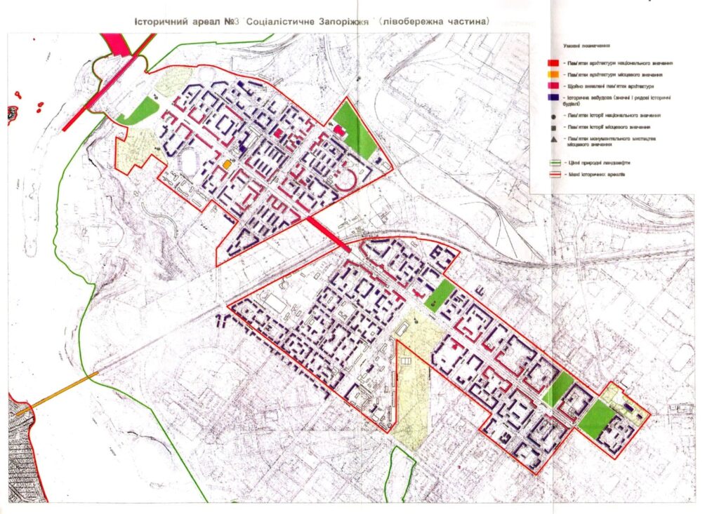 Ще у 2012 році у Запоріжжі затвердили історичні ареали «Старий Олександрівськ» та «Соціалістичне Запоріжжя». У першому випадку – це територія забудови великої історичної та архітектурної цінності орієнтовно між Центральним та Малим ринками, у другому – від вулиці Якова Новицького до площі Запорізької.
