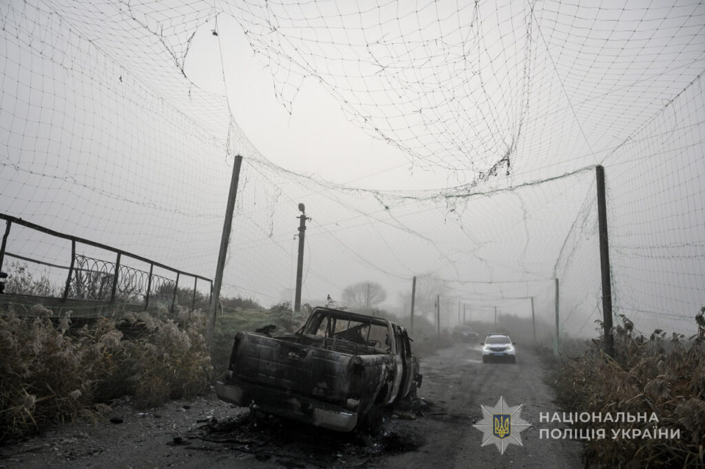 «Найбільша перепона й небезпека –дрони-«ждуни», які ховаються на дахах напівзруйнованих будівель, на шляхах – переважно за поворотами, щоб зненацька вдарити проїжджаючий автомобіль. Всюди тягнеться оптоволокно. Озброєні антидроновими рушницями поліцейські пильнують навкруги», – повідомили у поліції.
