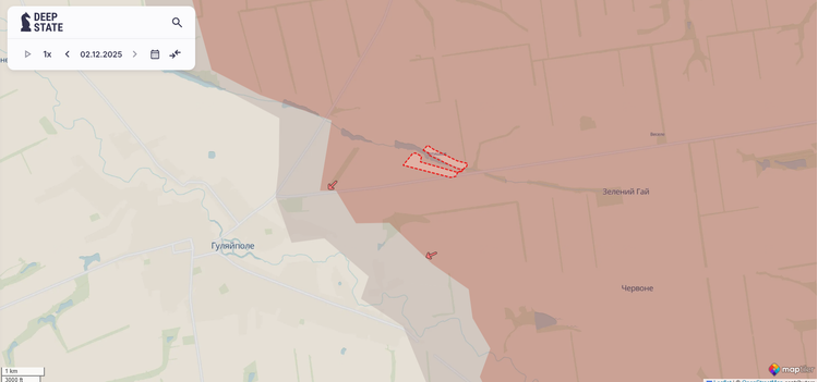 «Мапу оновлено. Ворог окупував Балаган (село Донецької області), Солодке (село Запорізької області) та Затишшя (село Запорізької області), а також просунувся у Покровську (місто Донецької області), поблизу Новоекономічного (селище Донецької області) та Гуляйполя (місто Запорізької області)», — йдеться у повідомленні DeepState.