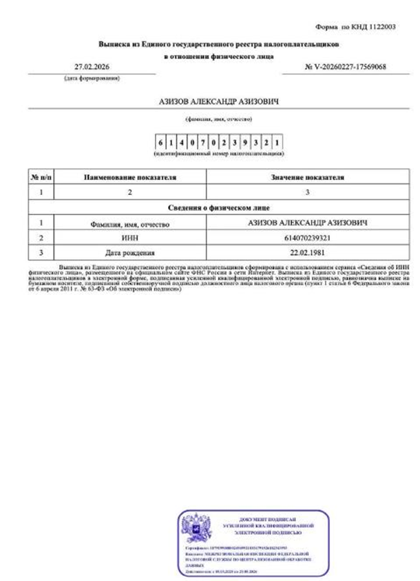 Окрім того, Азізов значиться в «Єдиному державному реєстрі платників податків» Російської Федерації.