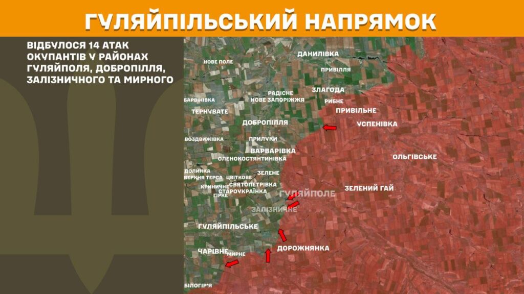 На Гуляйпільському напрямку минулої доби відбулося 14 атак окупантів у районах Гуляйполя, Добропілля, Залізничного та Мирного.