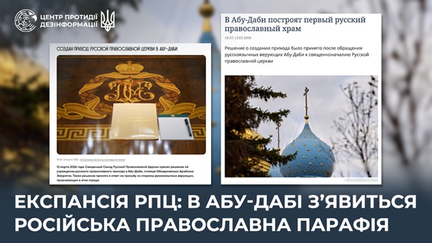 Російська православна церква відкриє свою релігійну громаду у столиці ОАЕ — Абу-Дабі. Про це повідомив Центр протидії дезінформації в п’ятницю, 13 березня.