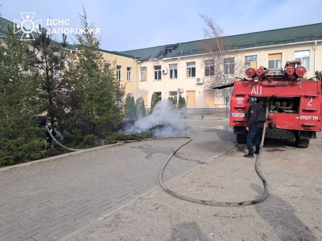 В одному із сіл рятувальники ліквідували наслідки влучань по закладу освіти. Крім того, вогнеборці загасили суху траву на відкритій території на площі 15 квадратних метрів.