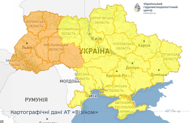 У низці областей України оголошено перший та другий рівень небезпечності. Про це повідомив Український гідрометцентр.
