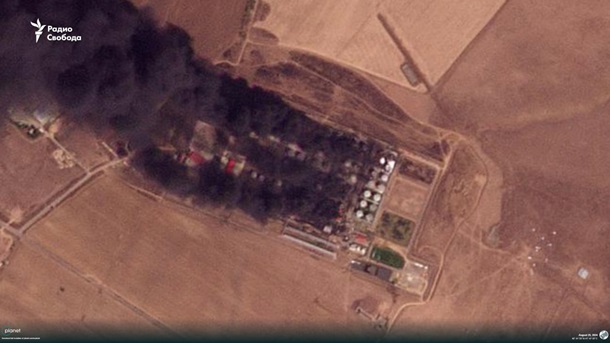 Крім того, Радіо Свобода розміщує супутниковий знімок оповитою димом бази.