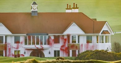 Активісти розмалювали будівлю клубу червоною фарбою, а на зеленому газоні намалювали величезний лозунг «Газа не продається». Гольф-клуб Trump Turnberry в