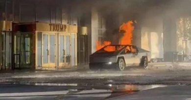 Перш ніж автомобіль вибухнув, водій стріляв собі в голову. За попередніми даними, це американський військовий. Поліція вважає вибух автомобіля Tesla