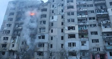 Внаслідок влучання КАБ в 9-й поверх житлового багатоквартирного будинку відбулось загоряння балконів з 2-го по 7-й поверх та чотирьох квартир.